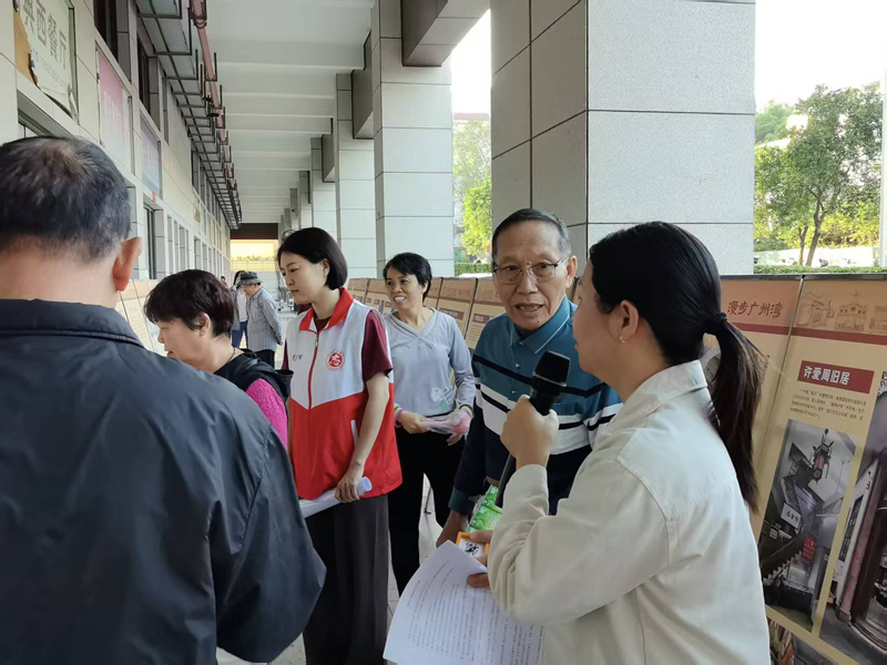 展板上的图文清晰定格了广州湾往昔的繁华瞬间,社区居民在博物馆工作人员专业的讲解中深化了对本土文化的认知。活动还特别设置了有奖问答环节,在场的观众们踊跃抢答,在一问一答中激发了对家乡历史的浓厚兴趣。通过“互动式”的学习,让历史文化“活起来”,并悄然走进大家的心里。