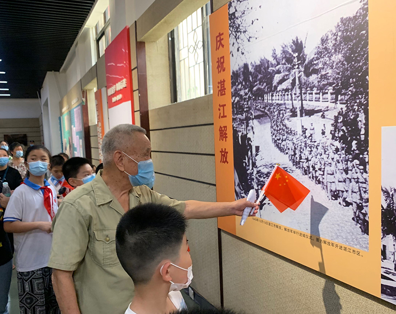 此次活动主题为“凝聚中国梦挥洒爱国情”,家长和孩子们都积极参与其中。正值党建立99周年之际,赤坎区关工委田欣民爷爷也来到博物馆,田爷爷带领大家参观“湛江人民抗法斗争陈列”、“从广州湾到湛江——湛江开埠百年历史展览”以及“湛江好人”等展览。田爷爷给孩子们讲了关于党、湛江的发展、湛江人民抗法斗争的历史。从党的建立到党的富强,传递没有共产党就没有新中国,只有共产党才能带领人民实现独立、解放、幸福和富强的理念。