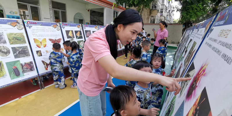 为进一步推动少年儿童的身心健康和快乐成长,提高幼儿了解大自然的兴趣,6月17日上午,我馆将《昆虫大世界》和《文物动物园》展览送进了幼儿园。