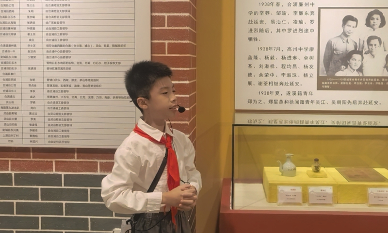 活动内容:红领巾讲解员向观众们讲解粤桂边区革命历史与革命故事,厚植家国情怀。