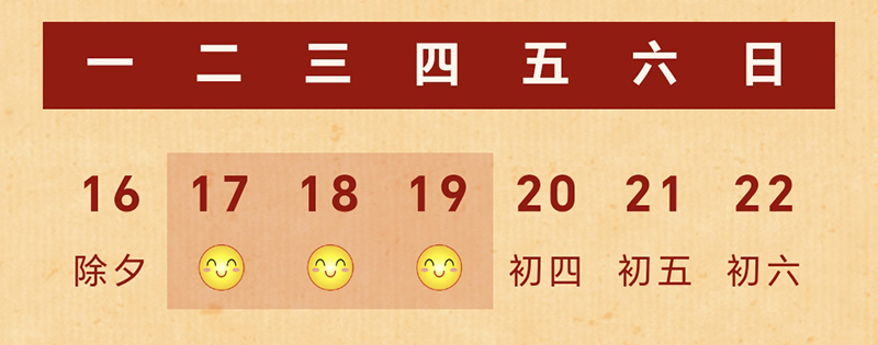 活动时间:2026年2月17日—19日(大年初一至初三)