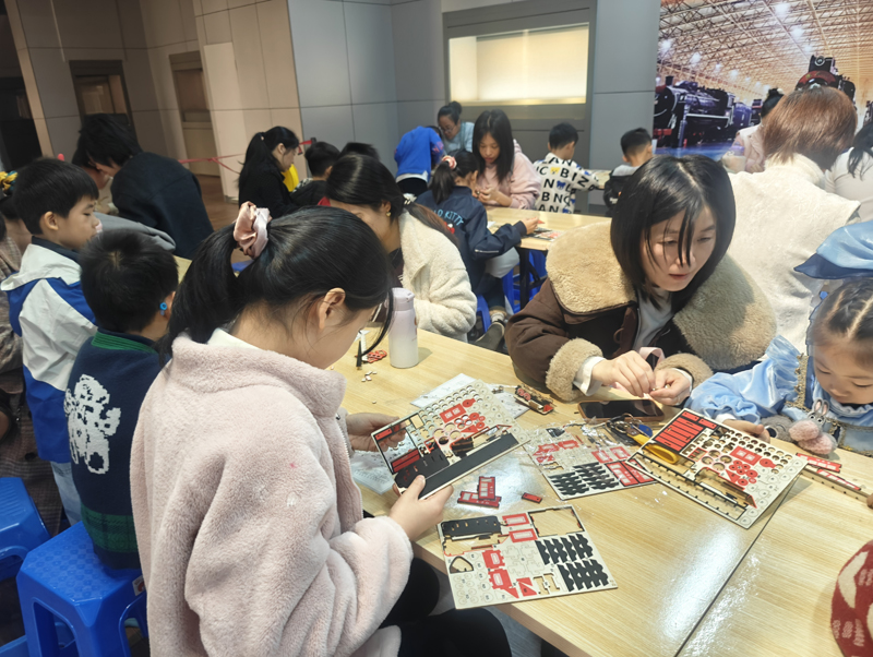 12日上午,主馆的“毛泽东号”机车展成为焦点。这台承载着解放战争烽火与国家建设记忆的“机车领袖”,在讲解员的生动讲解下,使参观者仿佛听见了跨越时空的轰鸣,感受着老一辈建设者的拼搏精神 。而拼装机车活动中,孩子们专注搭建模型,在动手实践中探寻铁路发展的奥秘,将“艰苦奋斗、永争一流”的机车精神悄然植入心间,实现了知识学习与精神传承的双重收获。