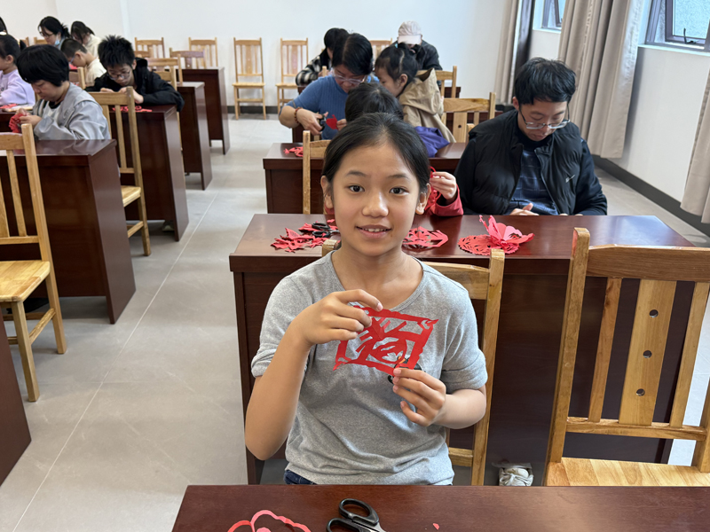 整场活动分为“参观展览”“观展悟新知”“节气微课堂”“知识竞答”和“迎春接福小手工”五个环节。同学们在认真聆听了纪念馆专题展的讲解及相关课件后,明白到立春中“更生”的节气意蕴,与革命精神“破旧立新”的特质高度契合。当讲解员问到哪一种物候特征可以与革命中破冰突围的精神相对应时,很多孩子都能答出是“东风解冻”。大家还在博物馆工作人员的的带领下一起念起了《立春日感怀》和《腊里立春蜂蝶辈出》等与立春相关的诗句。最后以迎春剪纸结束本场活动。