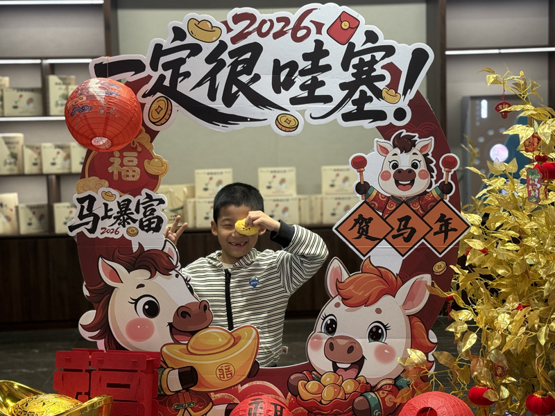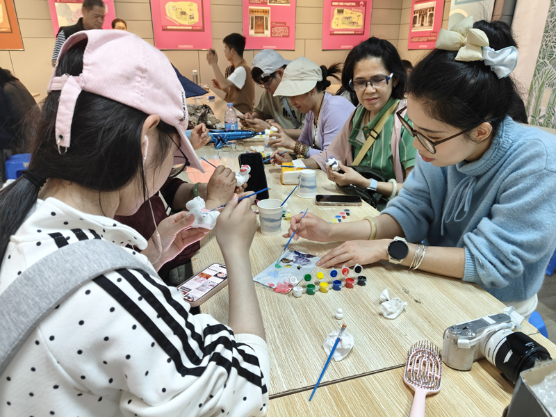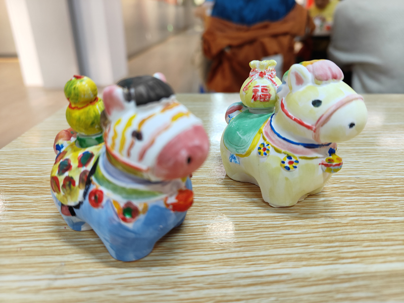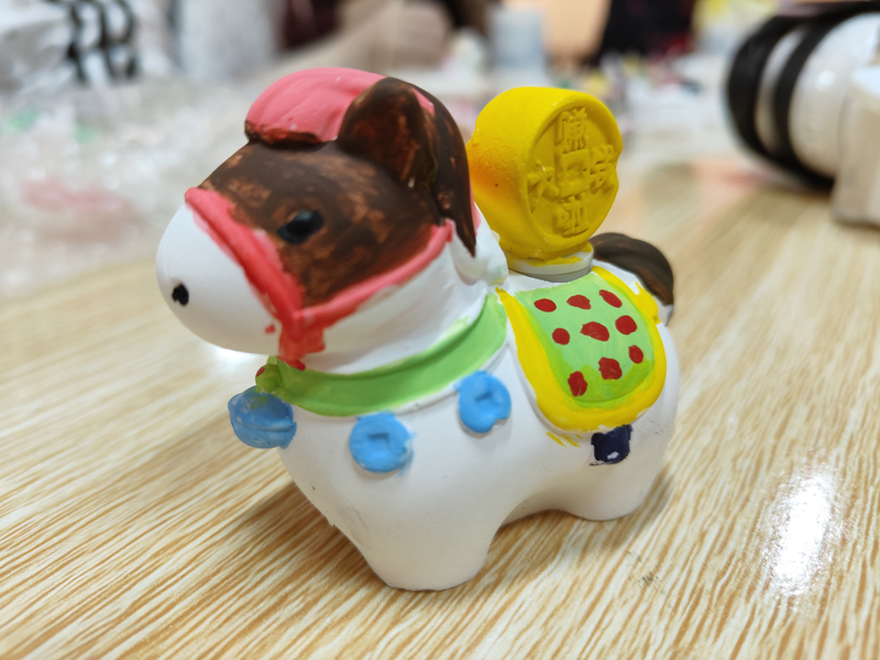 大年初一,主展馆的“新春纳福一纸祈安”活动吸引了众多游客参与,各人将亲手写上新年愿景和贺词的卡片挂在渔网上,寓意“网住幸福,兜住好运”。大家将心愿托付给时光与历史,更令祝福多了一份庄重和底气。“绘福马,贺新岁”活动备受亲子家庭青睐。在工作人员和志愿者的引导下,观众们用缤纷颜料为小白马披上新装:有热烈喜庆的中国红,有梦幻闪烁的多色霓虹、还有棕绿交错的迷彩风……原本素净的石膏小马在巧手下仿若新生,或威武神气、或憨态可掬,形态各异,满载着大家对马年的美好期许,成为新春里最具心意的文创小作品。且在动手实践中,深刻感受到生肖文化与传统年俗的独特魅力,留下了温馨的新春回忆。