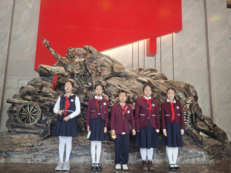 孩子们佩戴传声筒于展厅里从容开讲:在“解放洪流”展区,将战士们在战火纷飞中的浴血冲锋娓娓道来;在“缅怀英烈”展板前,述说两万三千多名英烈为民族独立和人民解放献出生命的悲壮过往。从土地革命到解放战争,从英雄事迹到革命文物,童声清澈却道尽峥嵘岁月,言语真诚更显赤子初心。