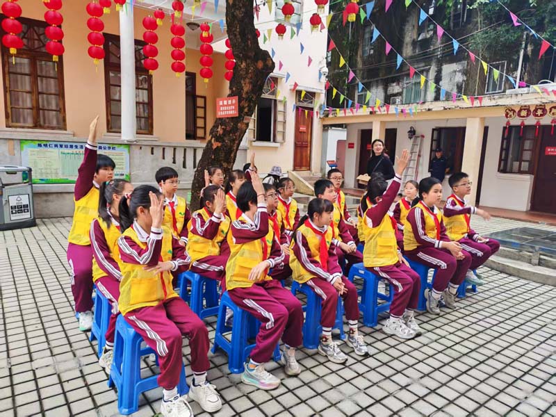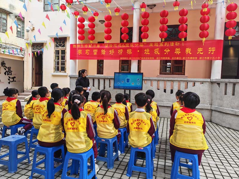 35日下午,湛江市博物馆联合湛江市第十五小学在陈明仁将军旧居举办“学习雷锋好榜样  垃圾分类我先行”主题活动,引导青少年树立环保意识,践行志愿服务理念。
